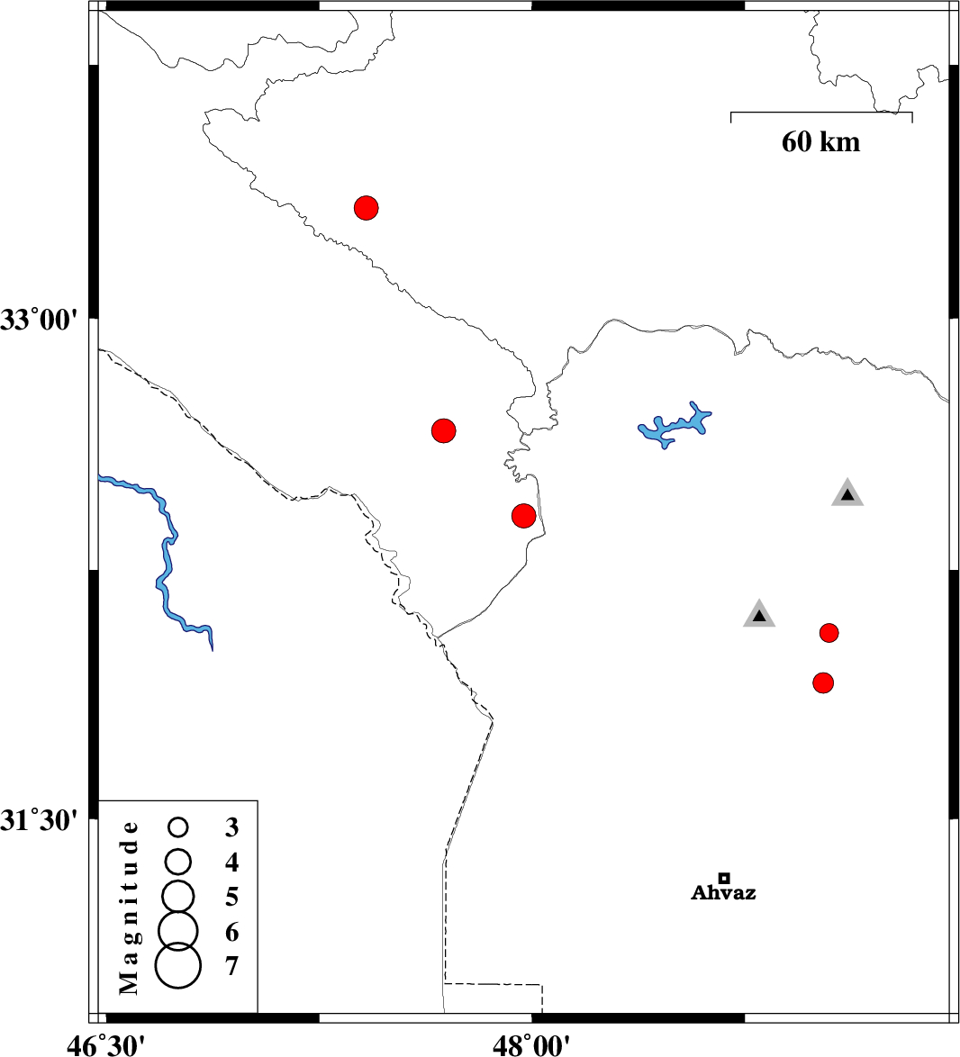 | 2021/03/06 | 16:45:07.5 | 20:15:07.5 | 32.061 | 49.047 | 9 | ML:3 | Khoozestan Province, 18 km -East of Shushtar | ||