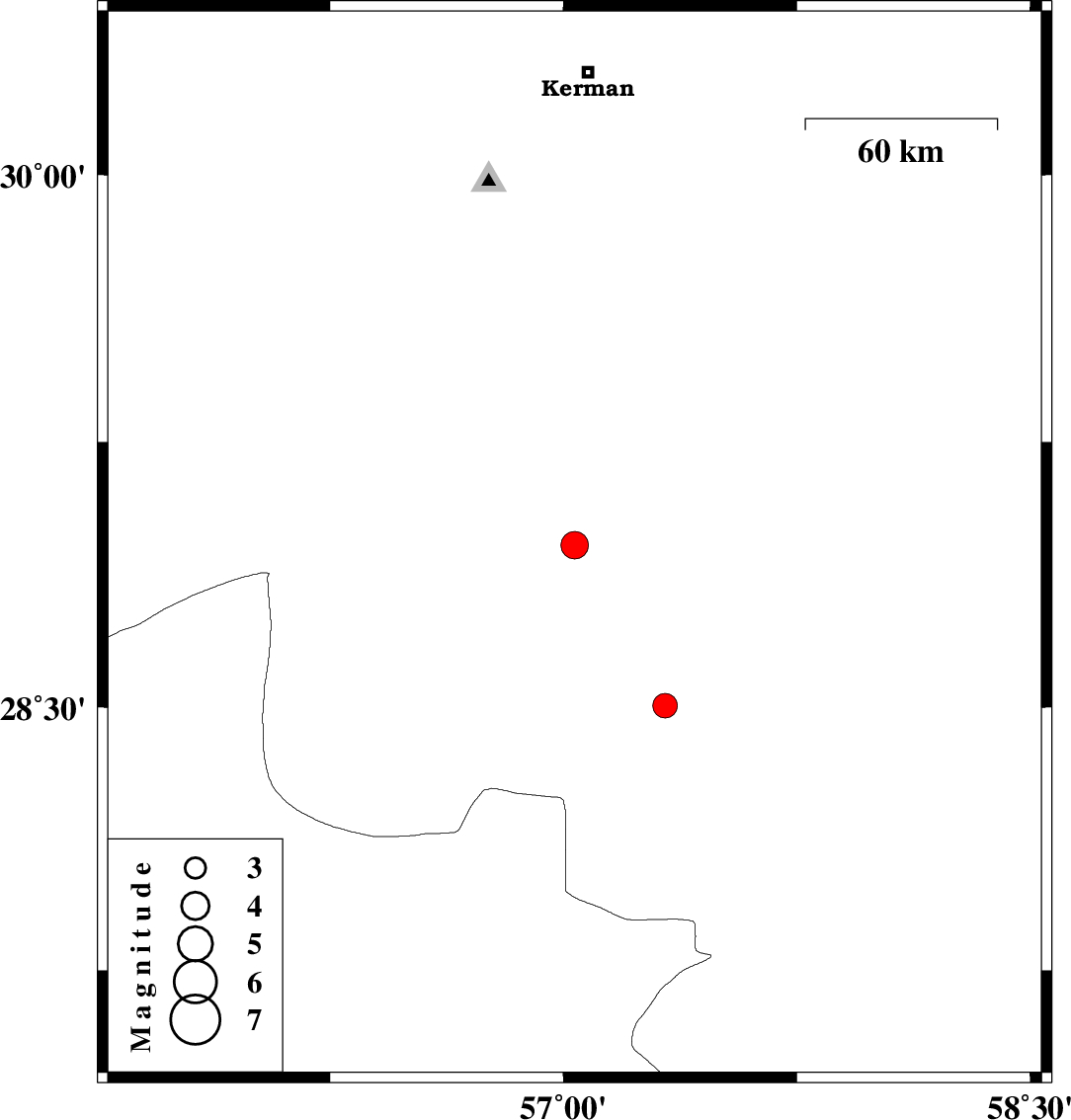 | 2021/04/11 | 17:26:57.4 | 21:56:57.4 | 28.958 | 57.036 | 20 | ML:4 | Kerman Province, 52 km South-East of Baft | ||