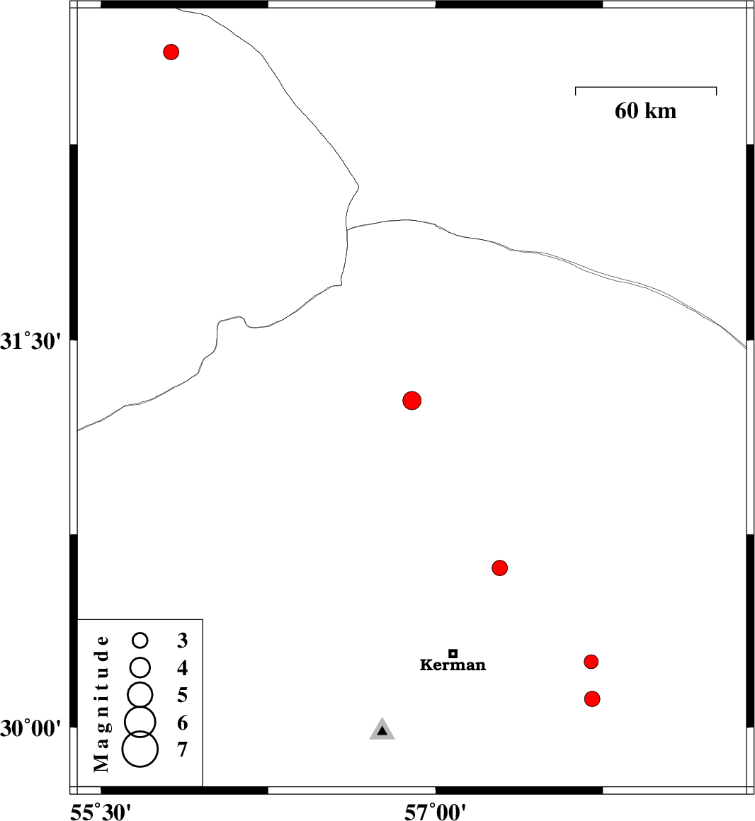 | 2021/03/14 | 13:12:53.4 | 16:42:53.4 | 30.62 | 57.288 | 16 | ML:3.1 | Kerman Province, 42 km North-East of Kerman |