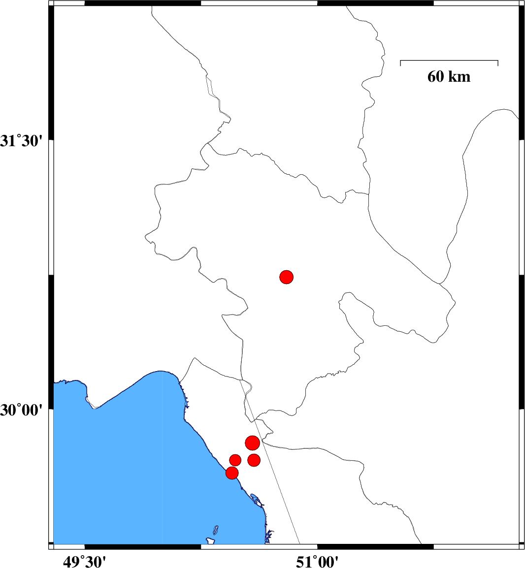 2021/05/07 | 01:23:47.1 | 05:53:47.1 | 30.739 | 50.8 | 12 | ML:4 | Kohkiluieh va boyerahmad Province, 23 km -East of Dehdasht | ||
