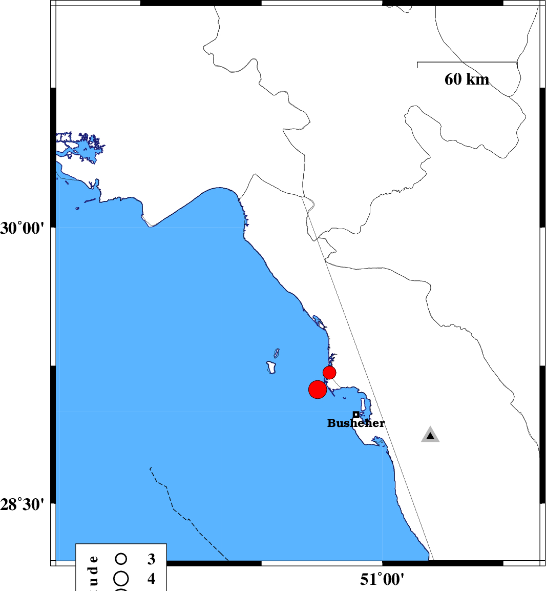 | 2021/05/21 | 11:52:16.1 | 16:22:16.1 | 29.687 | 50.476 | 12 | ML:5.1 | Bushehr Province, 13 km North of Bandar-e genaveh | ||
