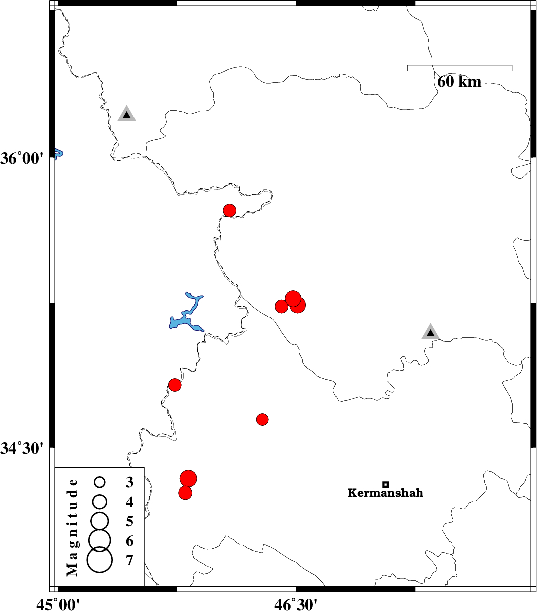 | 2021/04/26 | 10:09:55.1 | 14:39:55.1 | 34.338 | 45.821 | 6 | ML:4.8 | Kermanshah Province, 15 km South of Sar-e pol-e zahab | ||
