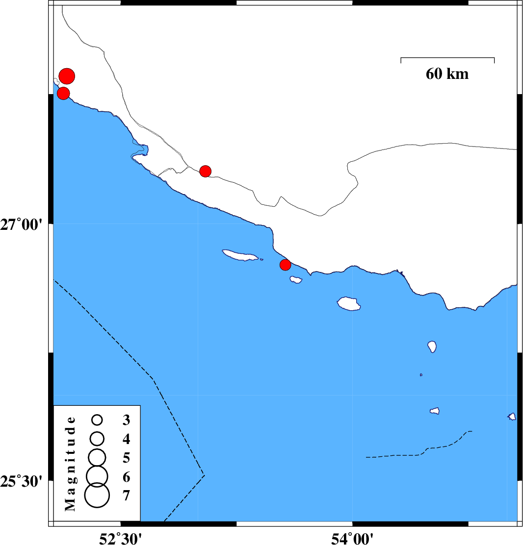 | 2021/05/20 | 06:21:20.1 | 10:51:20.1 | 27.755 | 52.129 | 18 | ML:3.7 | Persian Gulf, 10 km of Bandar-e kangan | ||