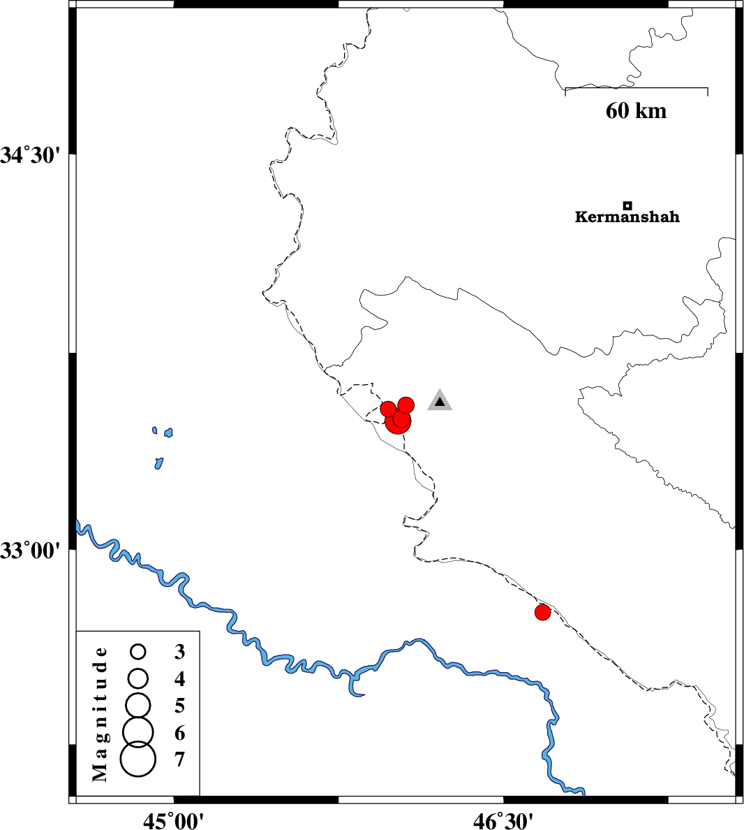 2021/06/06 | 05:55:43.9 | 10:25:43.9 | 33.536 | 45.975 | 12 | ML:3.3 | Ilam Province, 44 km South-West of Ilam | ||