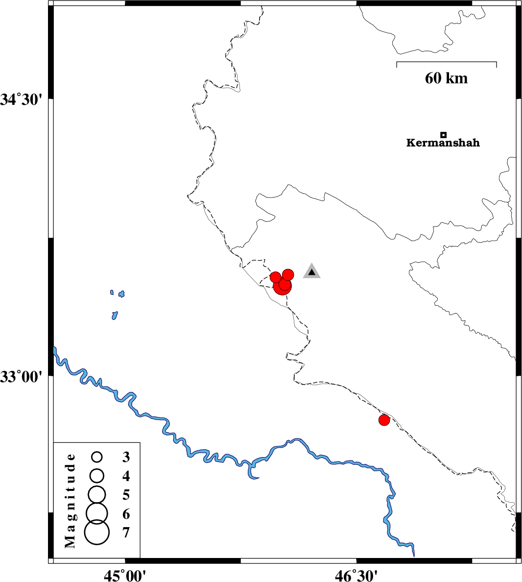 | 2021/05/29 | 23:59:48.7 | 04:29:48.7 | 32.758 | 46.679 | 12 | ML:3.3 | Iraq, 55 km -West of Dehloran |