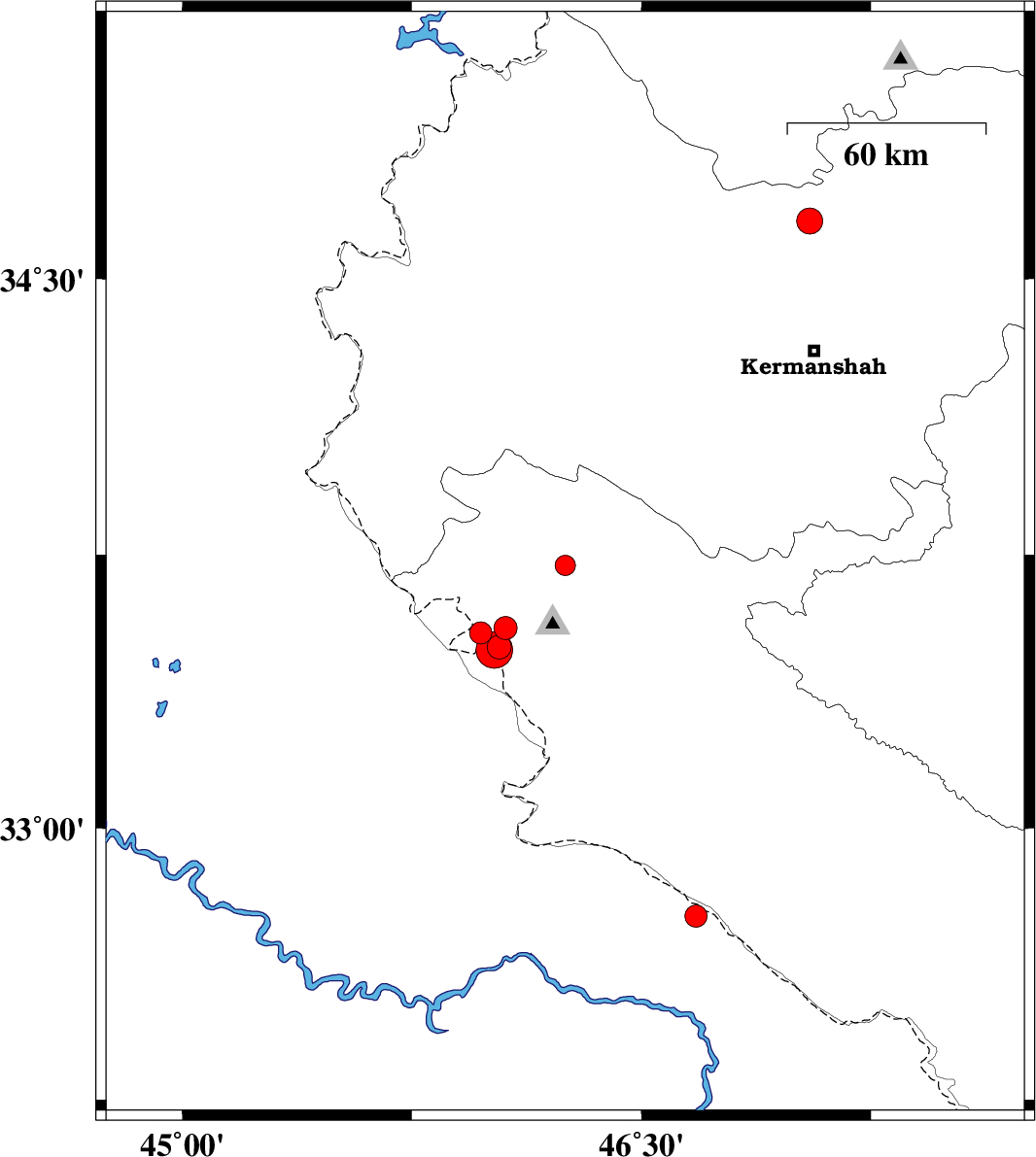 2021/06/06 | 05:55:43.9 | 10:25:43.9 | 33.536 | 45.975 | 12 | ML:3.3 | Ilam Province, 44 km South-West of Ilam | ||