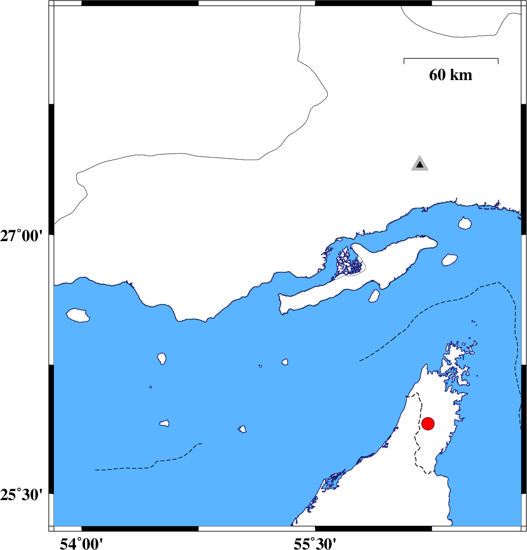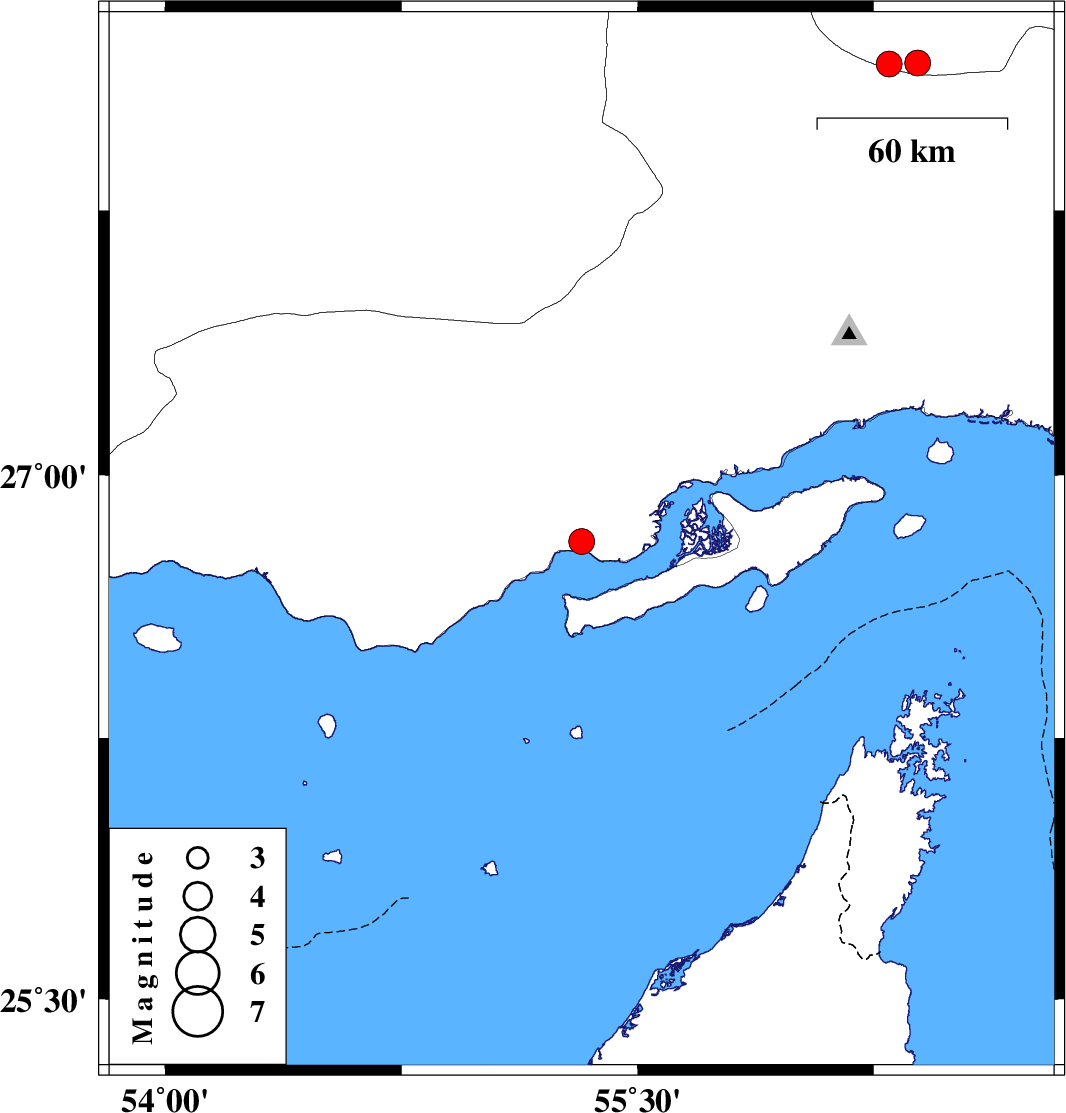 | 2021/06/19 | 17:43:50.6 | 22:13:50.6 | 26.811 | 55.322 | 16 | ML:3.7 | Hormozgan Province, 57 km North-East of Bandar-e lengeh | ||