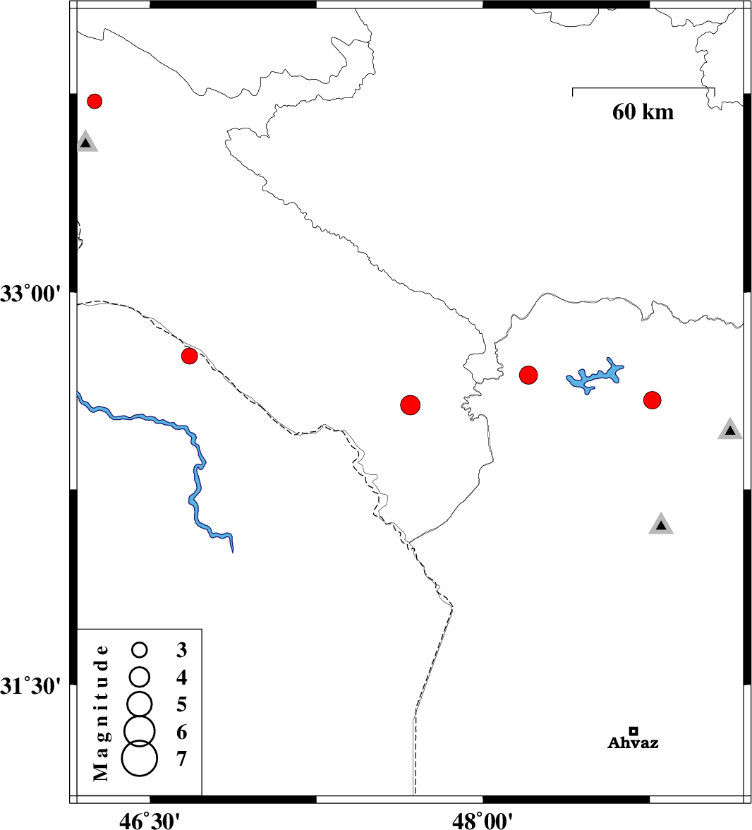 | 2021/06/20 | 13:21:00.9 | 17:51:00.9 | 32.571 | 47.672 | 12 | ML:4 | Ilam Province, 41 km South-East of Dehloran | ||