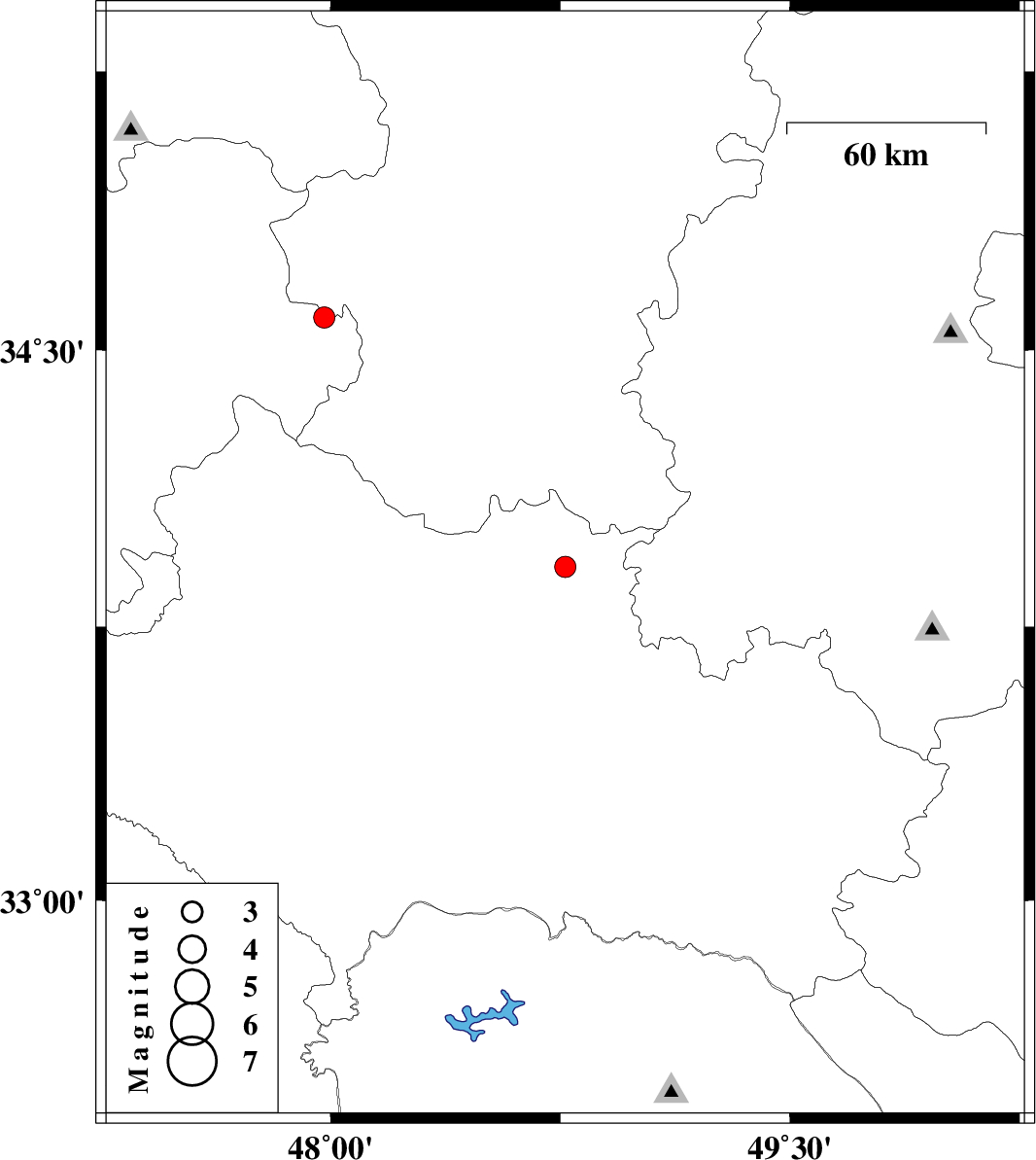 | 2021/06/28 | 04:37:28.2 | 09:07:28.2 | 33.913 | 48.766 | 12 | ML:3.1 | Lorestan Province, 2 km of Borujerd | ||
