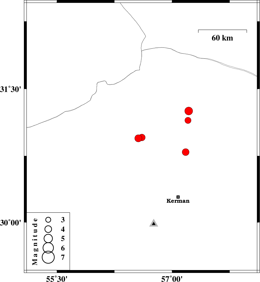 | 2021/06/02 | 08:50:00.9 | 13:20:00.9 | 31.149 | 57.207 | 15 | ML:3.7 | Kerman Province, 40 km South-East of Ravar | ||