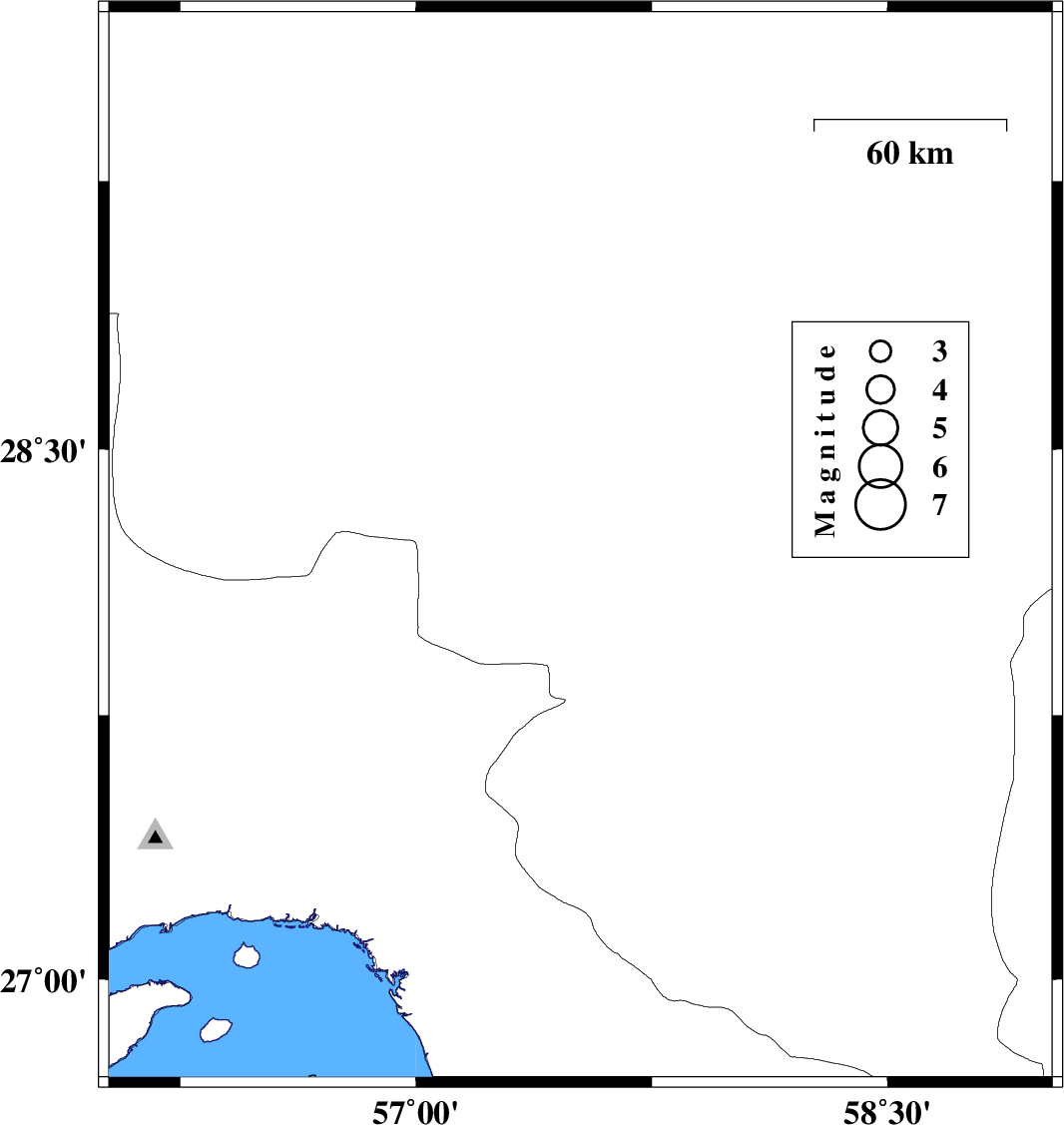 2021/07/05 | 09:32:37.4 | 14:02:37.4 | 28.07 | 57.529 | 12 | ML:4.3 | Kerman Province, 21 km North-West of Kahnuj | ||