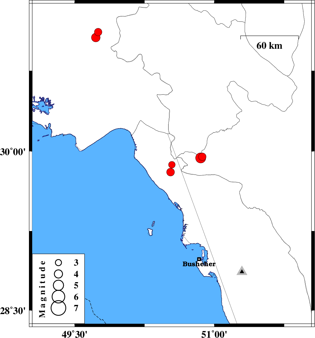 | 2021/07/09 | 07:13:04.6 | 11:43:04.6 | 29.804 | 50.53 | 12 | ML:3.8 | Bushehr Province, 26 km North of Bandar-e genaveh |