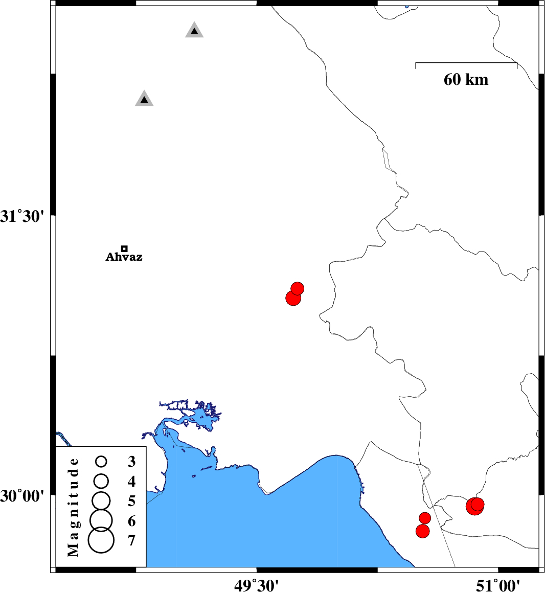 | 2021/07/11 | 01:38:43.5 | 06:08:43.5 | 31.058 | 49.726 | 12 | ML:4.2 | Khoozestan Province, 33 km North of Omidiyeh | ||