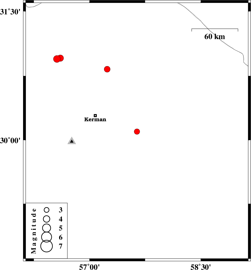 | 2021/07/16 | 17:15:37.8 | 21:45:37.8 | 30.099 | 57.64 | 12 | ML:3.4 | Kerman Province, 58 km South-East of Kerman | ||