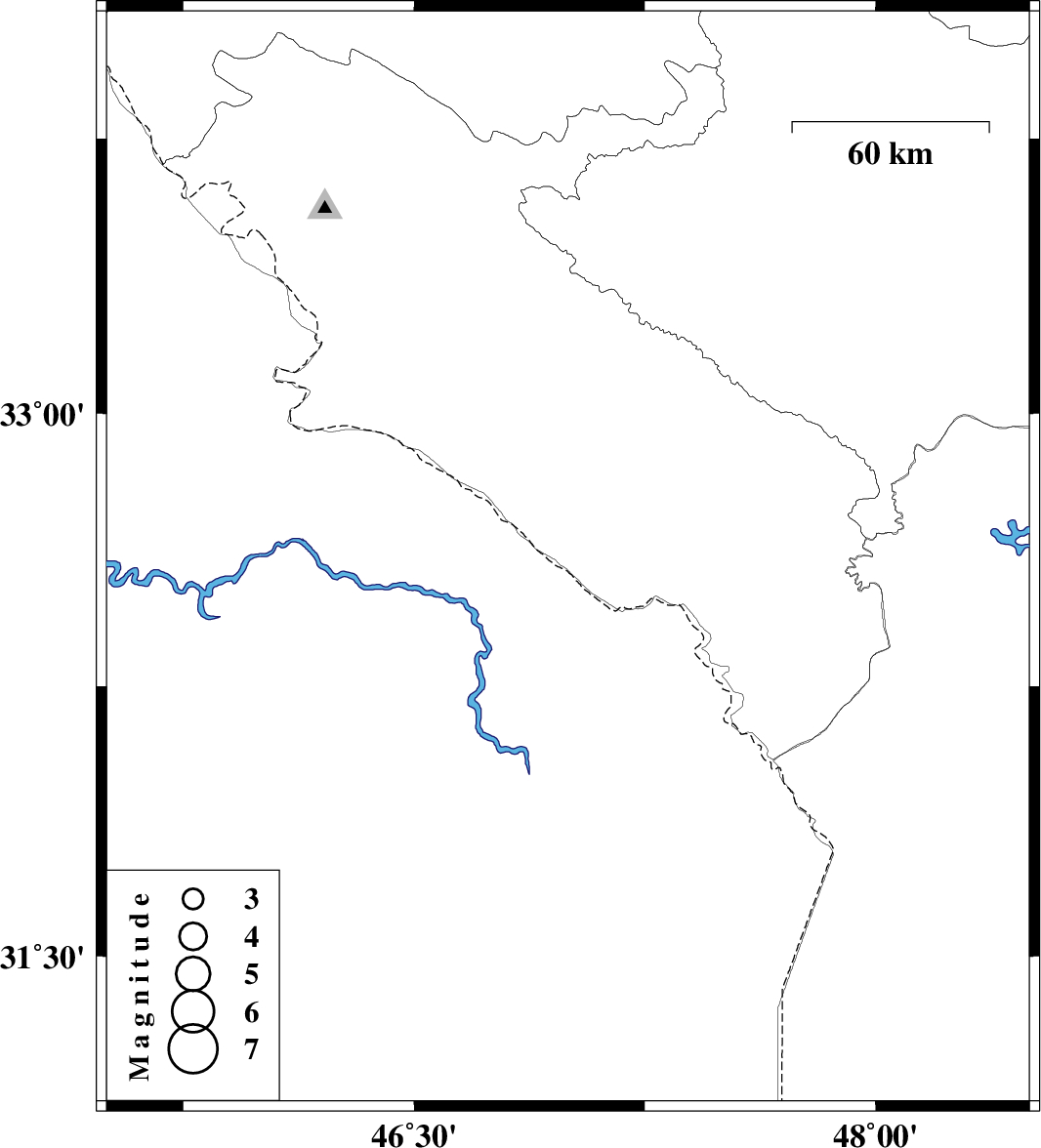 | 2021/07/30 | 11:55:19.6 | 16:25:19.6 | 32.597 | 47 | 19 | ML:3.3 | Ilam Province, 27 km -West of Dehloran |