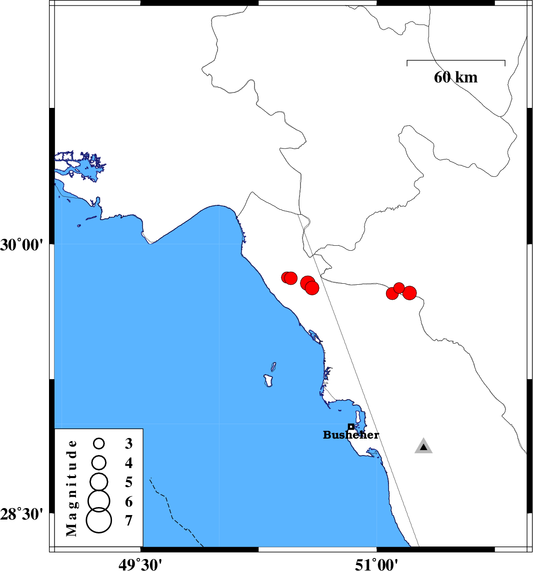 | 2021/07/29 | 23:47:25.9 | 04:17:25.9 | 29.783 | 50.562 | 12 | ML:4.3 | Bushehr Province, 24 km North of Bandar-e genaveh | ||