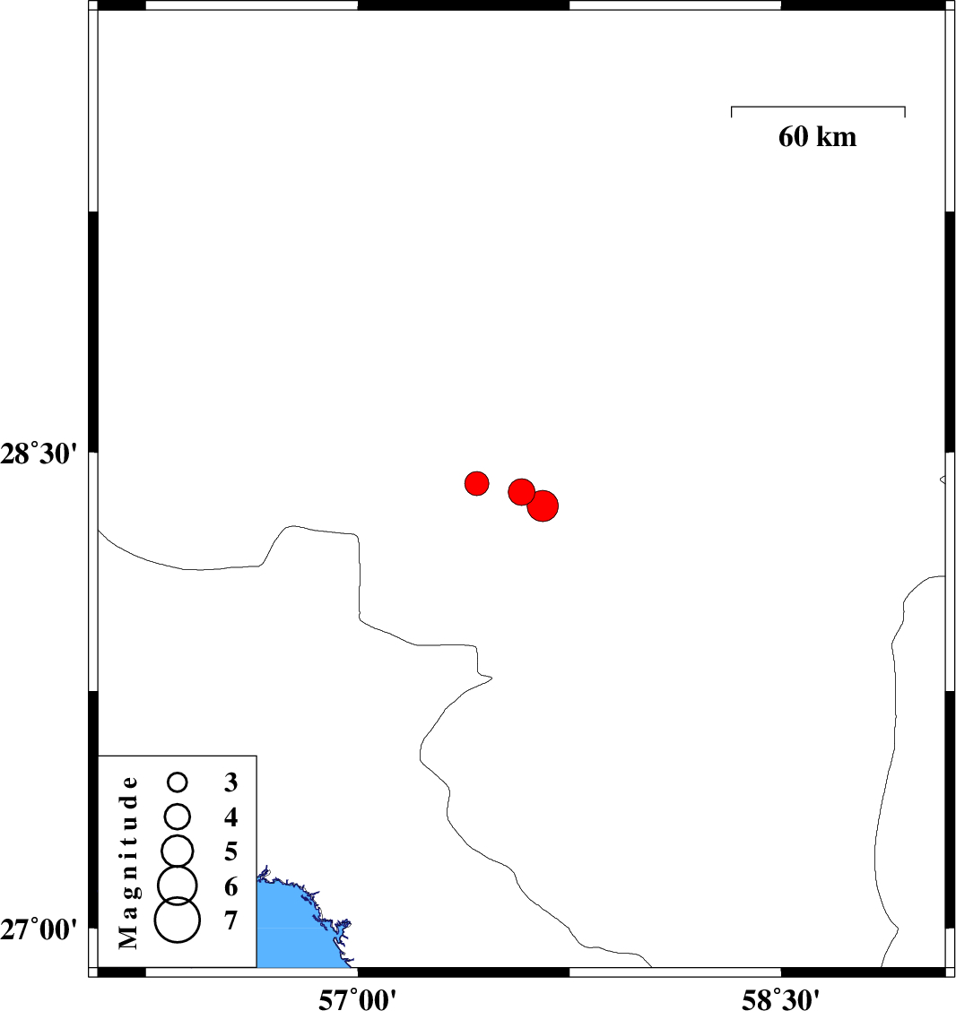 | 2021/08/12 | 12:11:05.2 | 16:41:05.2 | 28.402 | 57.422 | 9 | ML:3.8 | Kerman Province, 43 km South-West of Jiroft |