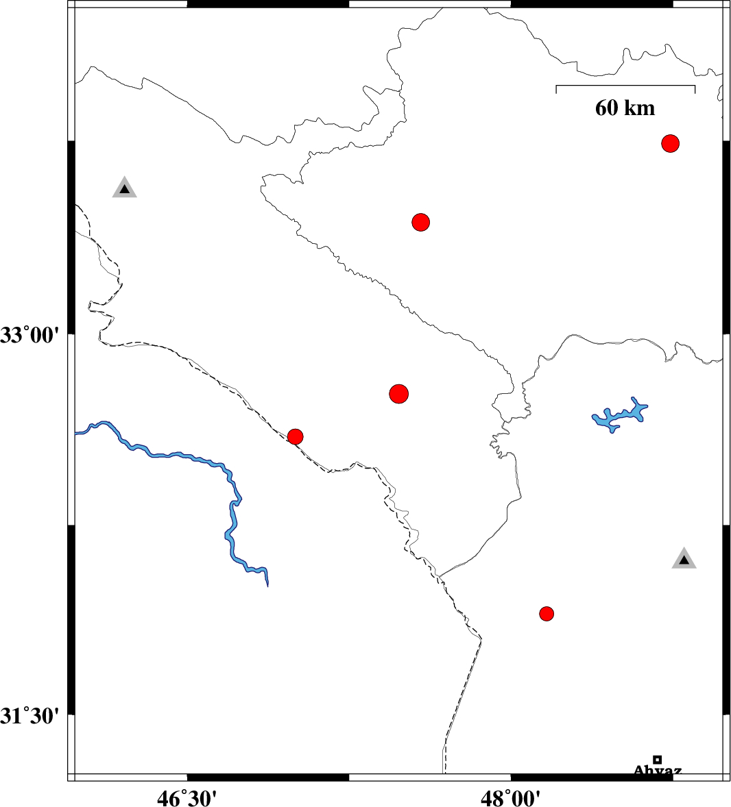2021/07/18 | 17:08:08.1 | 21:38:08.1 | 31.9 | 48.164 | 12 | ML:3 | Khoozestan Province, 38 km North of Susangerd | ||
