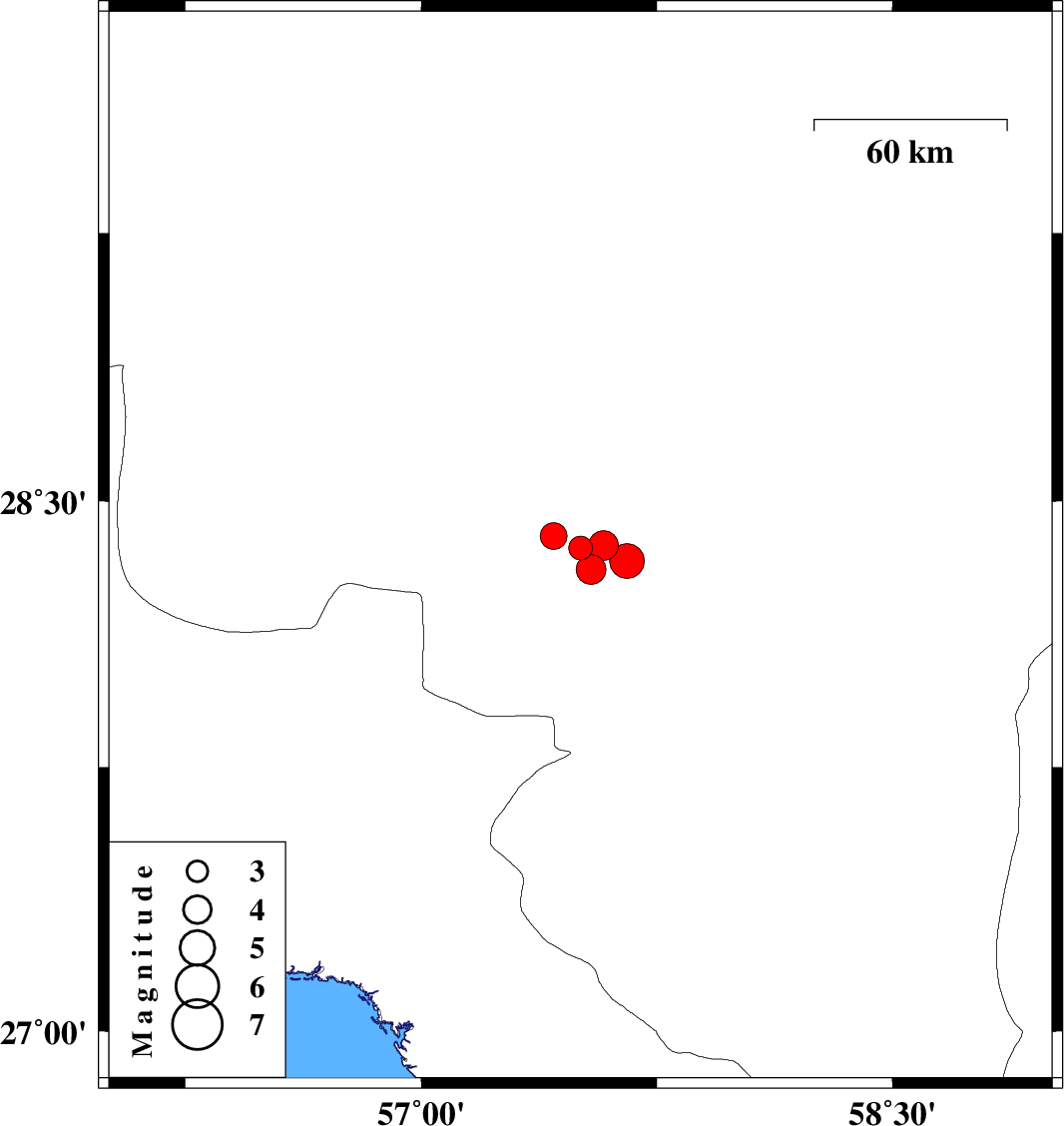 | 2021/08/12 | 12:24:06.2 | 16:54:06.2 | 28.332 | 57.655 | 16 | ML:5 | Kerman Province, 38 km South of Jiroft | ||