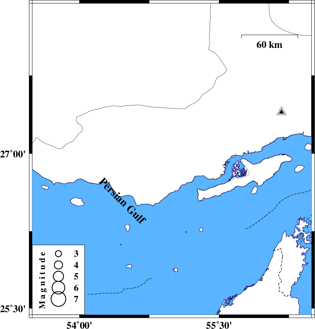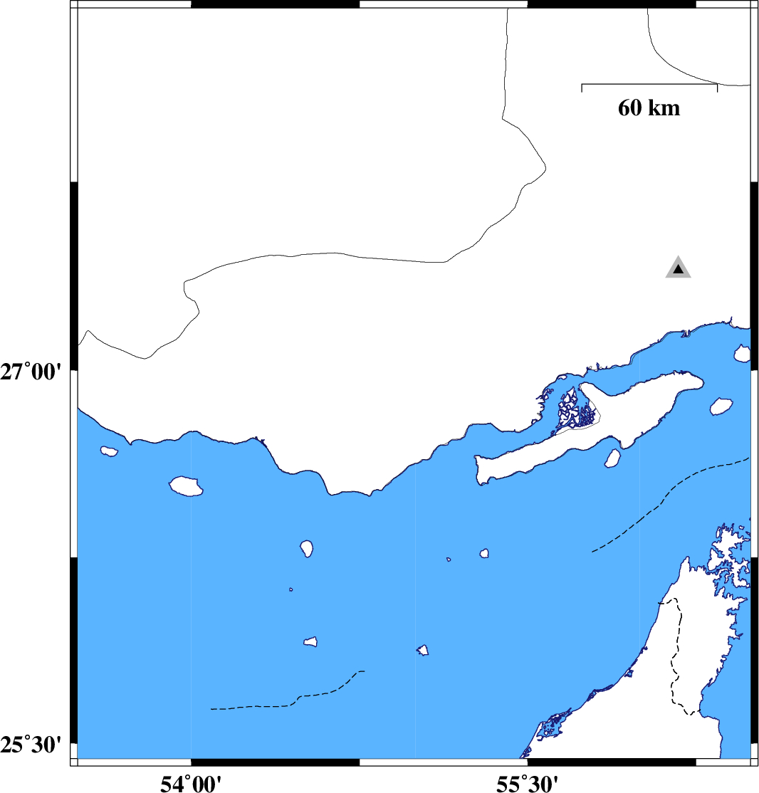 | 2021/08/08 | 06:04:50.3 | 10:34:50.3 | 26.938 | 54.993 | 22 | ML:3.5 | Hormozgan Province, 48 km North-East of Bandar-e lengeh |