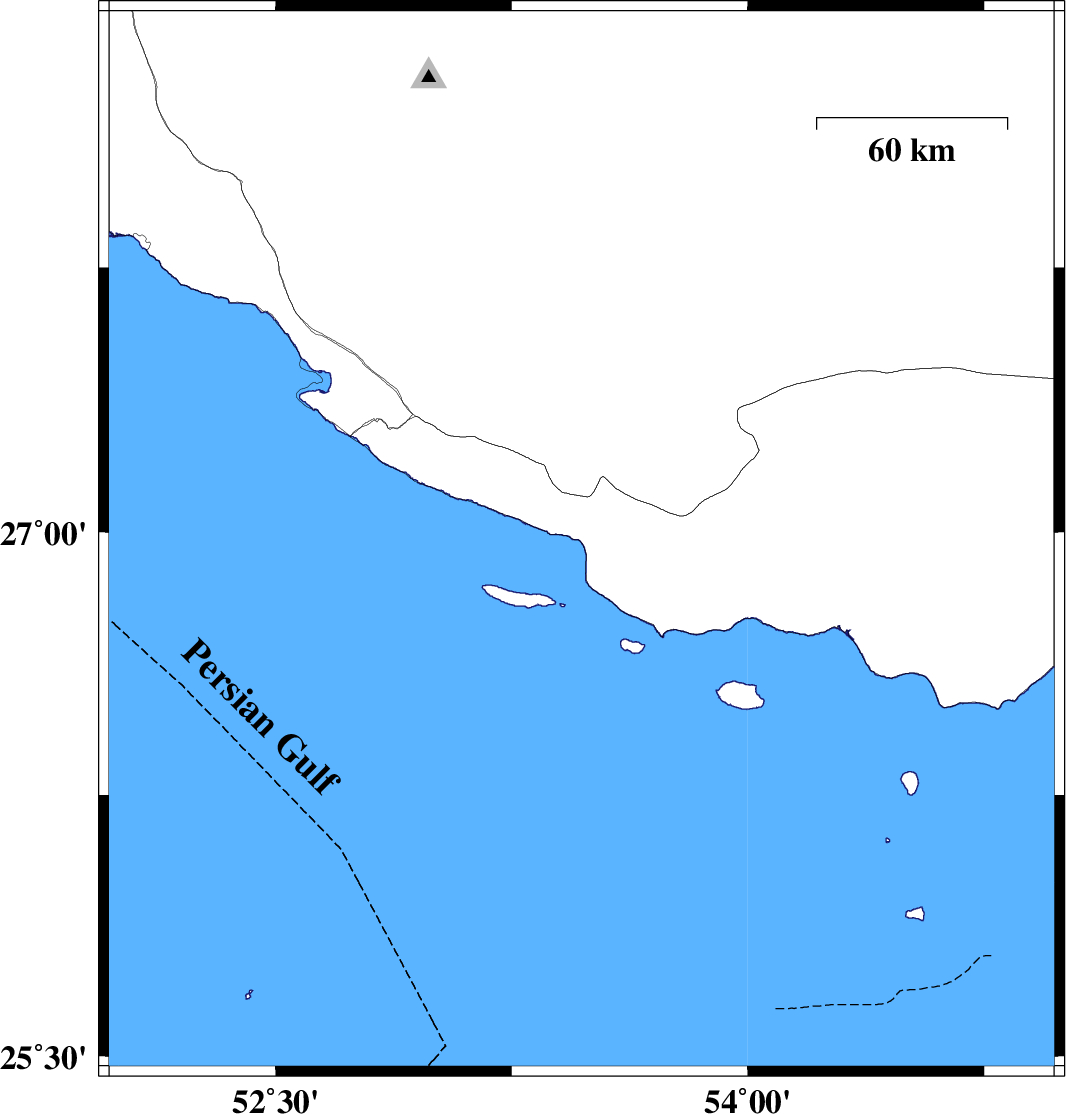 | 2021/08/23 | 22:49:12.2 | 03:19:12.2 | 26.973 | 53.472 | 12 | ML:3.3 | Hormozgan Province, 50 km South-East of Lamerd | ||