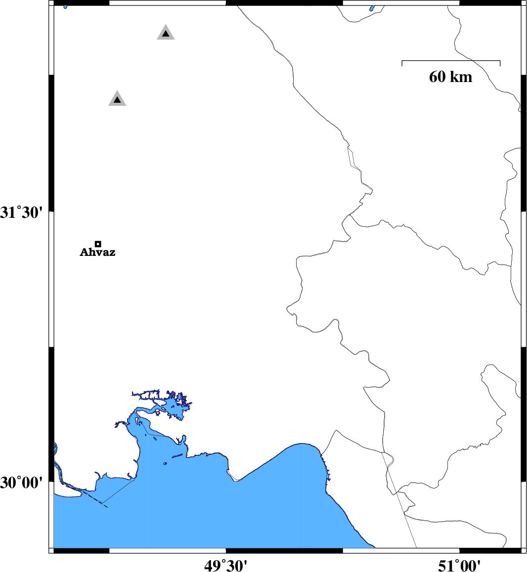 Map Region : lat:29.628-32.628  lon:48.395-51.395
