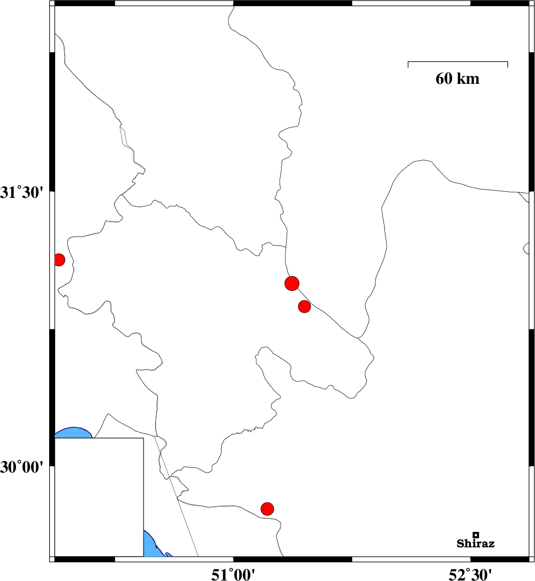 | 2021/09/02 | 16:23:56.2 | 20:53:56.2 | 29.764 | 51.214 | 12 | ML:3.6 | Fars Province, 56 km North of Borazjan | ||