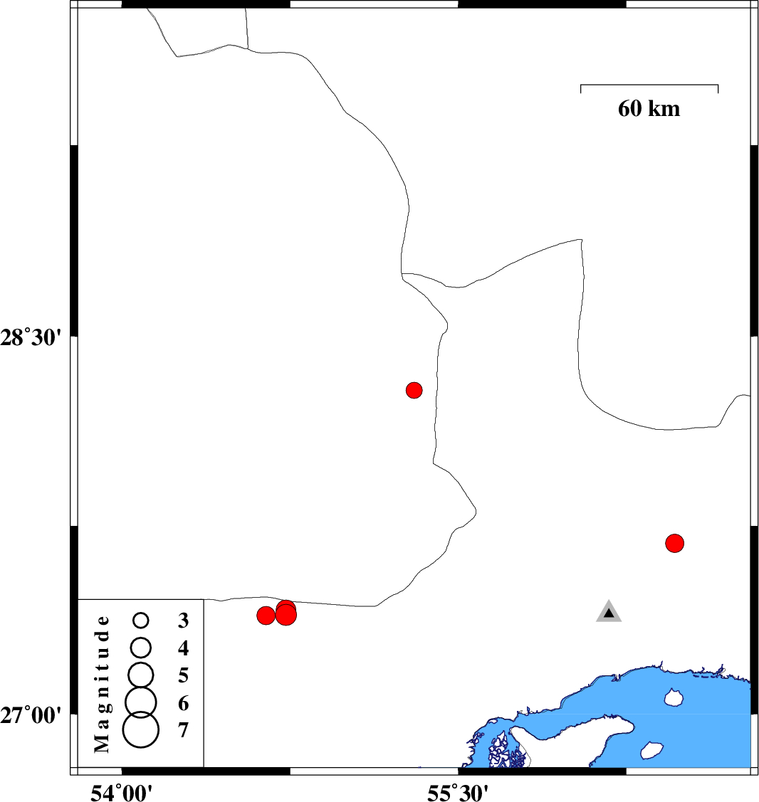 | 2021/09/11 | 21:20:01.8 | 01:50:01.8 | 27.394 | 54.643 | 22 | ML:3.6 | Hormozgan Province, 35 km North-East of Bastak | ||