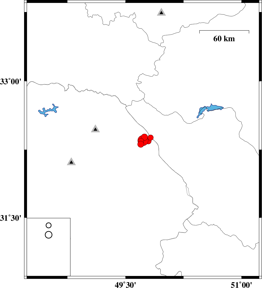 | 2021/10/01 | 20:17:42.6 | 23:47:42.6 | 32.345 | 49.794 | 12 | ML:3.5 | Khoozestan Province, 33 km South-West of Chelgard |