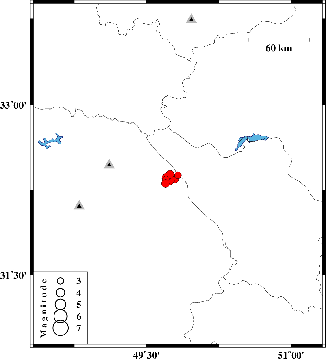 | 2021/10/01 | 20:17:42.6 | 23:47:42.6 | 32.345 | 49.794 | 12 | ML:3.5 | Khoozestan Province, 33 km South-West of Chelgard |