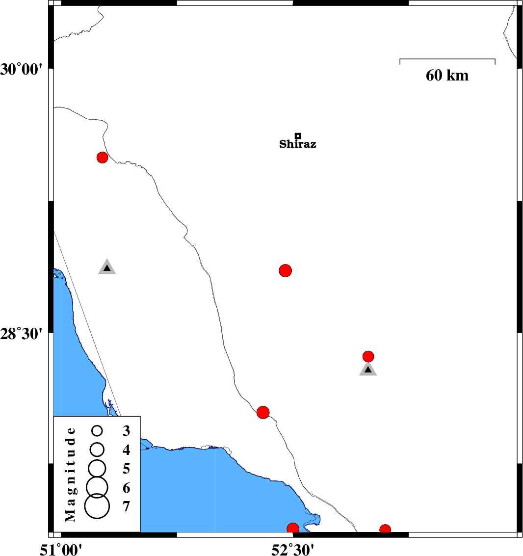 | 2021/09/19 | 22:11:08.1 | 02:41:08.1 | 27.372 | 52.5 | 12 | ML:3.5 | Persian Gulf, 43 km South-West of Mehr |