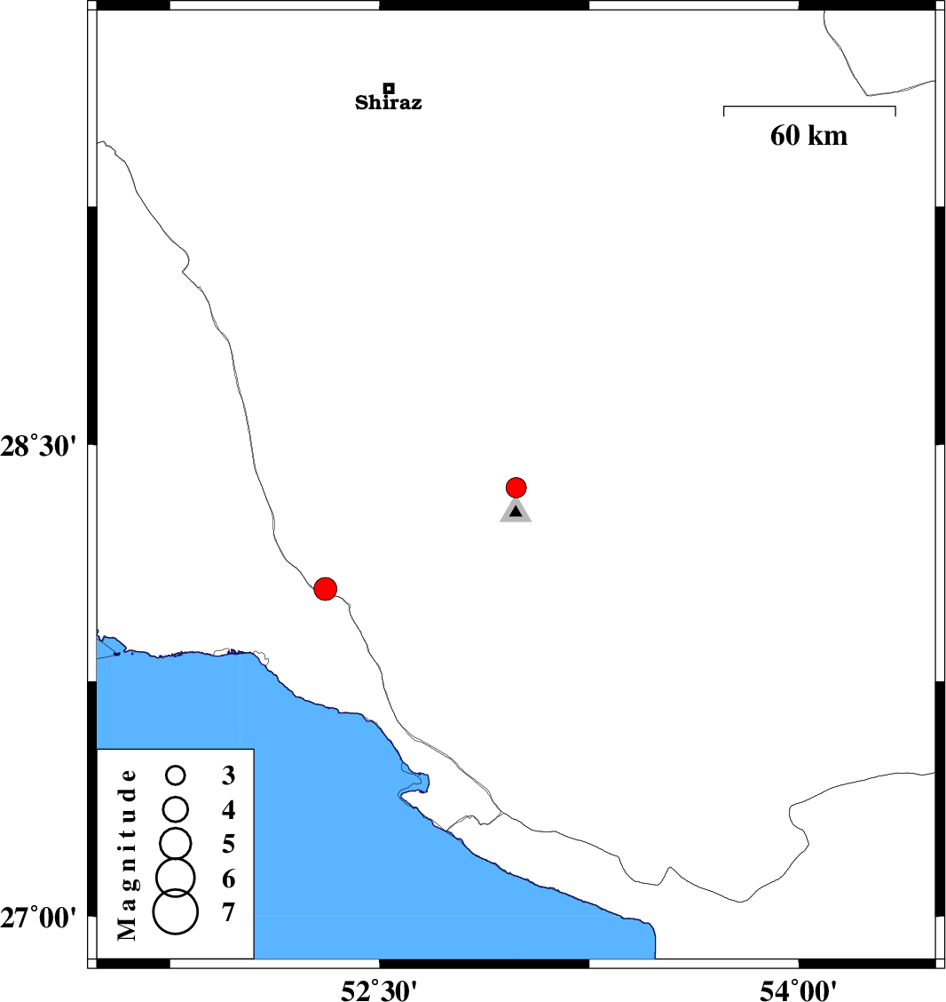 | 2021/10/08 | 10:13:25.8 | 13:43:25.8 | 28.043 | 52.306 | 15 | ML:3.6 | Fars Province, 23 km North of Jam |