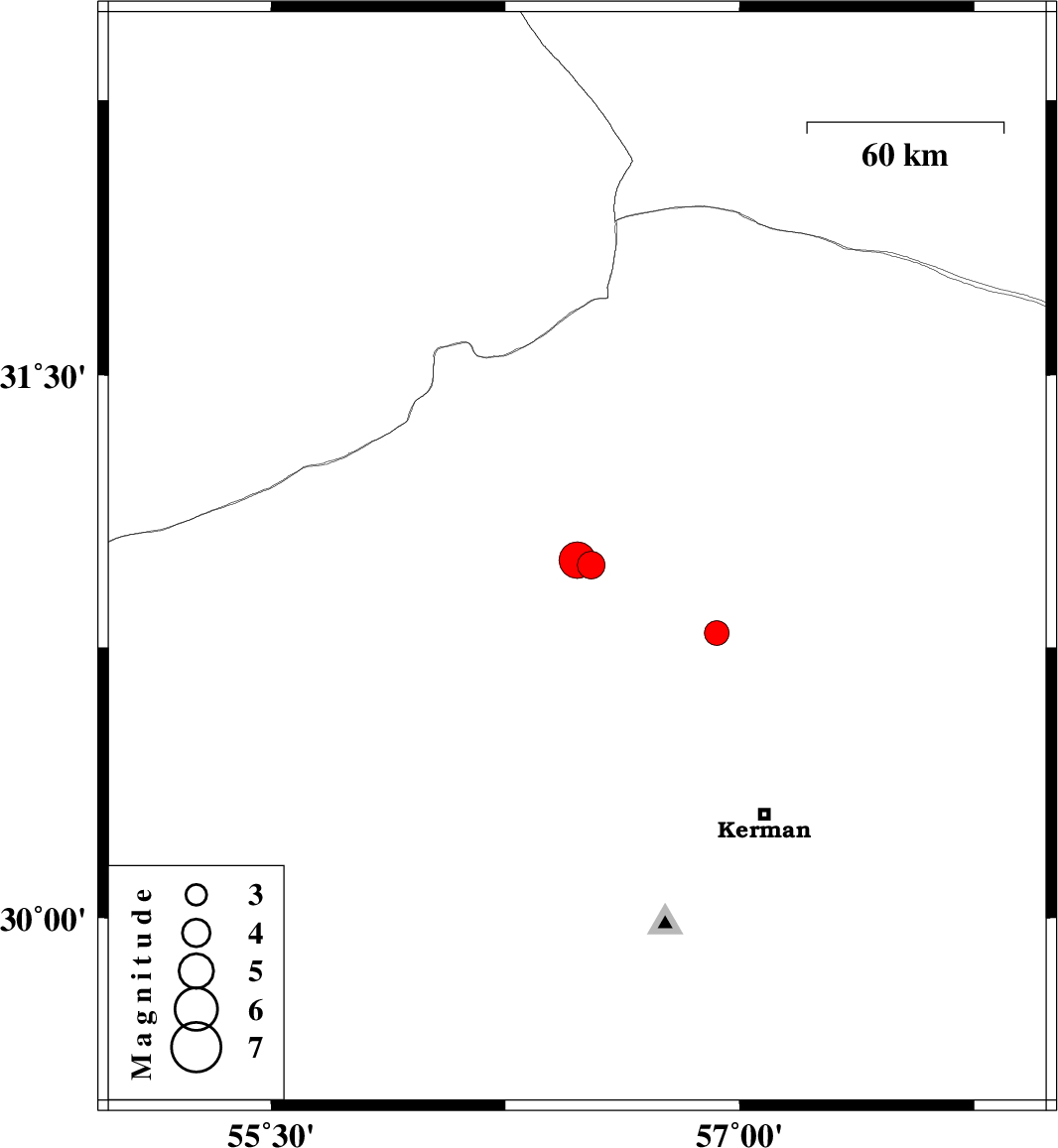 | 2021/10/16 | 11:46:01.9 | 15:16:01.9 | 30.991 | 56.48 | 12 | ML:5.2 | Kerman Province, 22 km North of Zarand | ||