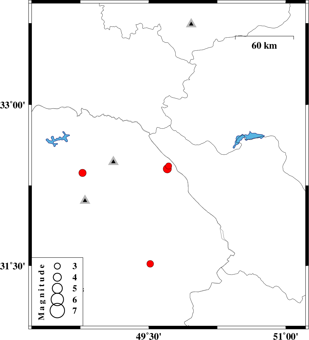 | 2021/10/10 | 21:52:06.3 | 01:22:06.3 | 32.405 | 49.703 | 19 | ML:4.1 | Khoozestan Province, 40 km -West of Chelgard |