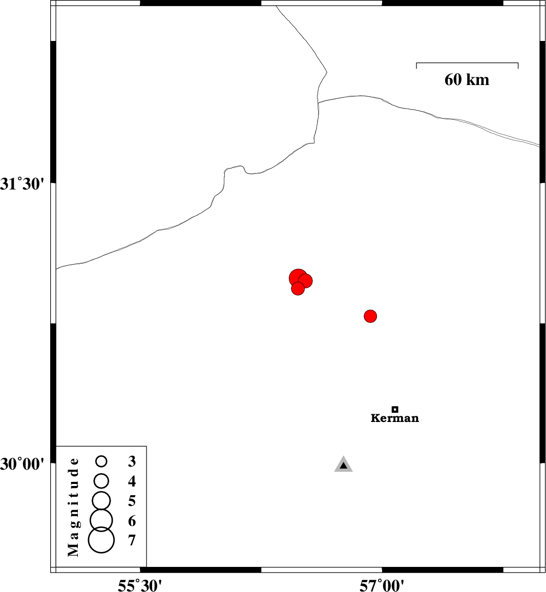 | 2021/10/16 | 12:59:18.9 | 16:29:18.9 | 30.977 | 56.524 | 1 | ML:4 | Kerman Province, 19 km North of Zarand | ||