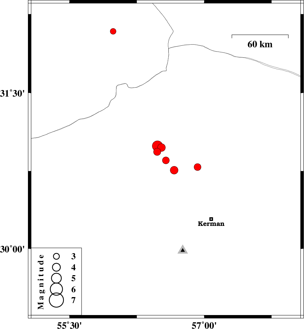 | 2021/09/29 | 11:01:45.1 | 14:31:45.1 | 30.759 | 56.666 | 12 | ML:4 | Kerman Province, 11 km of Zarand | ||