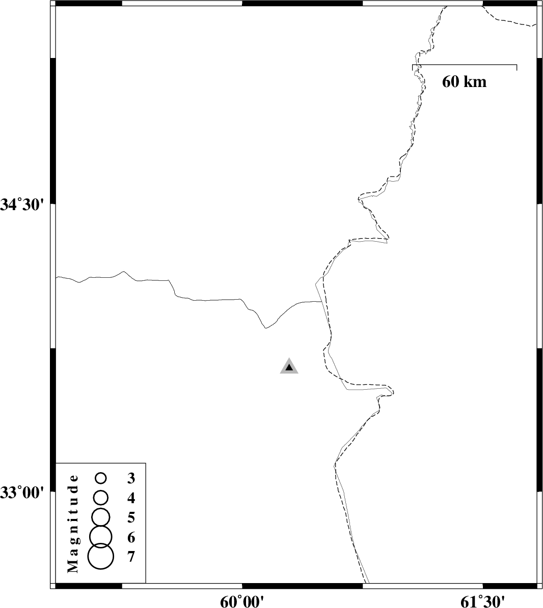 | 2021/10/23 | 15:33:11.3 | 19:03:11.3 | 34.016 | 60.336 | 12 | ML:3.7 | Khorasan(center) Province, 64 km South-East of Khaf |