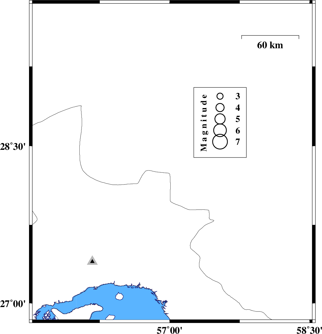 2021/10/21 | 06:05:14.8 | 09:35:14.8 | 27.639 | 58.498 | 12 | ML:4.7 | Kerman Province, 86 km South-East of Kahnuj | ||