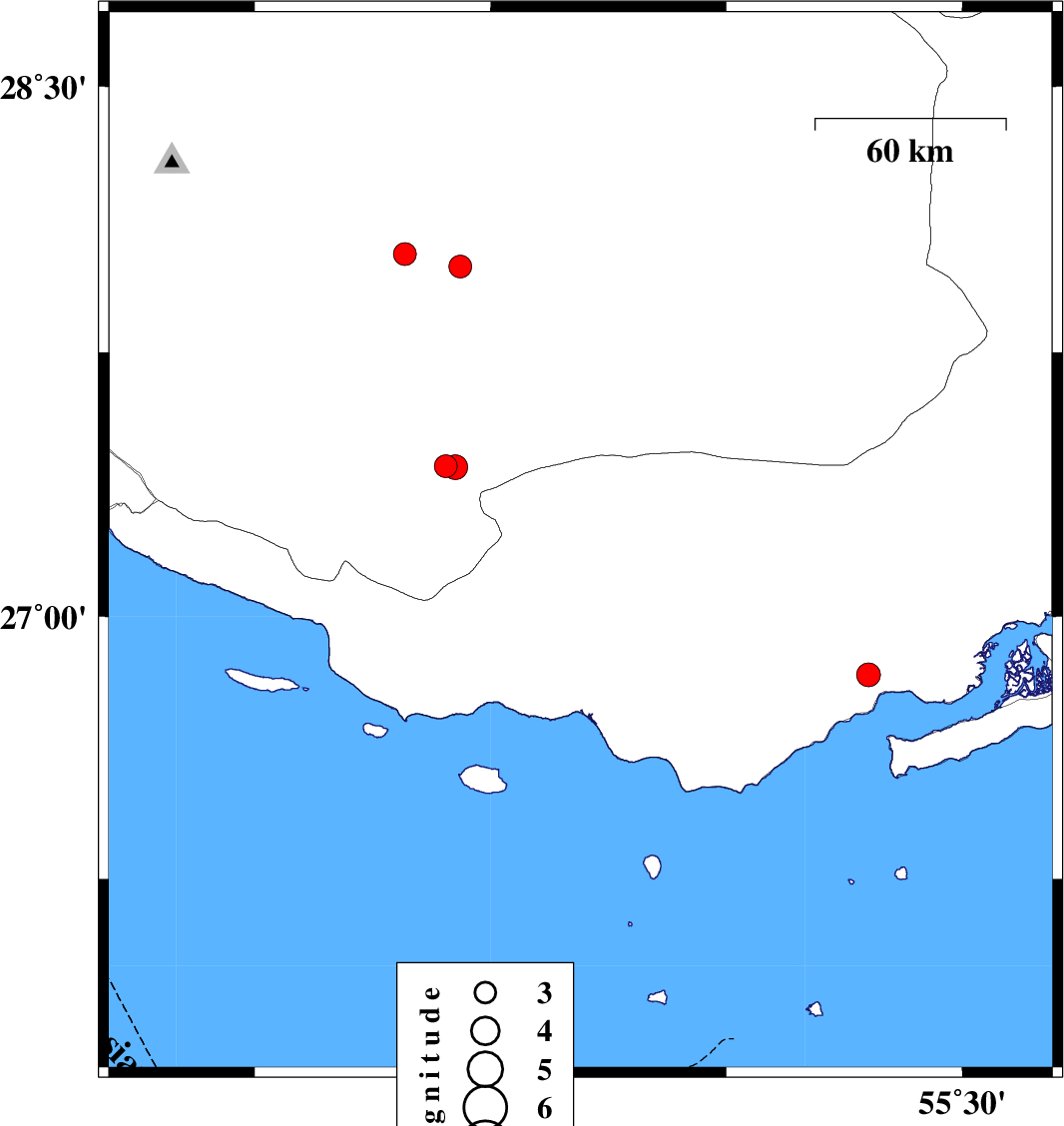 | 2021/10/31 | 07:49:13.3 | 11:19:13.3 | 27.798 | 52.972 | 10 | ML:3.5 | Fars Province, 29 km North of Mehr | ||