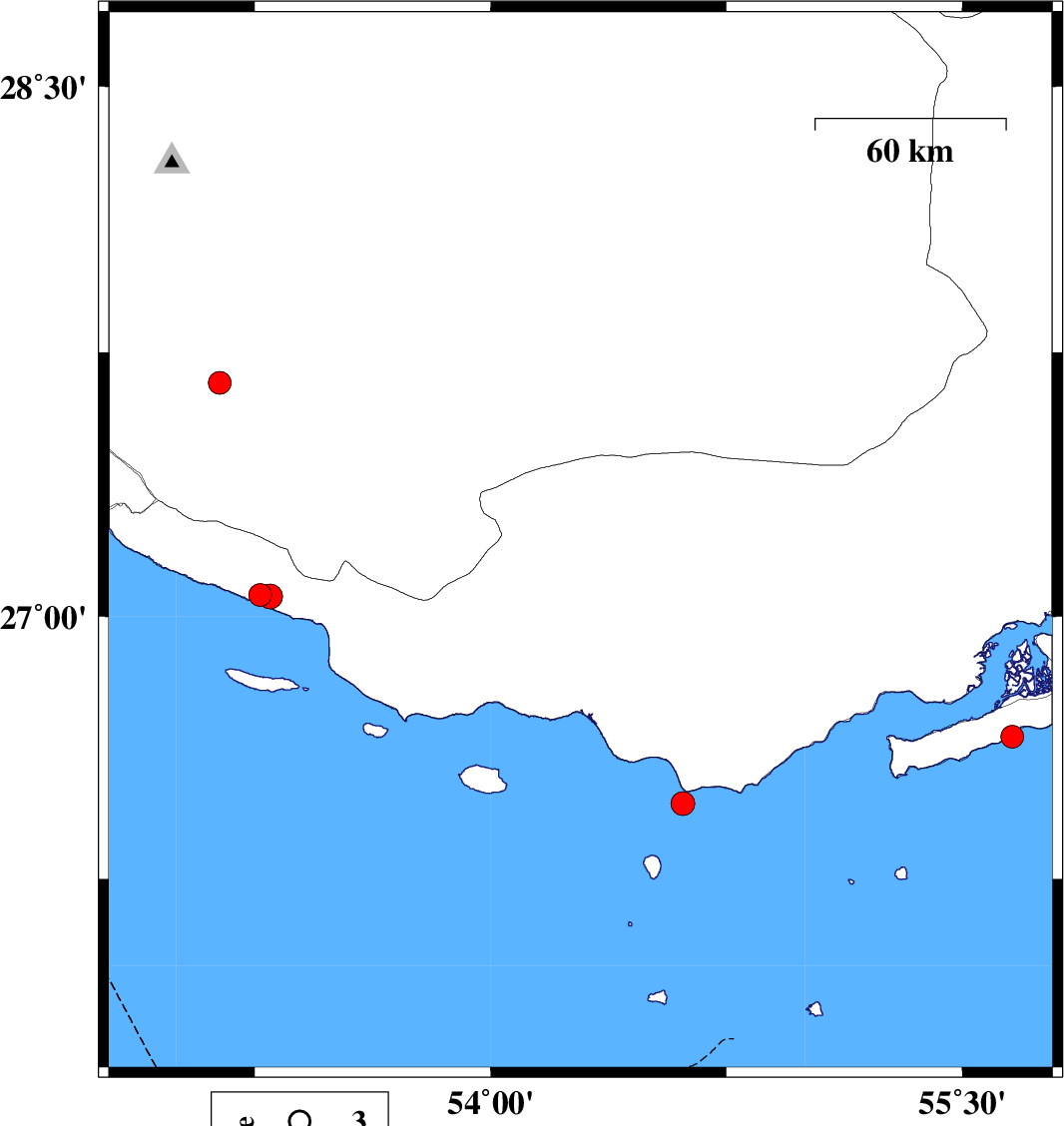 | 2021/11/01 | 15:48:43.7 | 19:18:43.7 | 27.401 | 55.333 | 12 | ML:3.2 | Hormozgan Province, 97 km North-West of Bandar-e abbas | ||