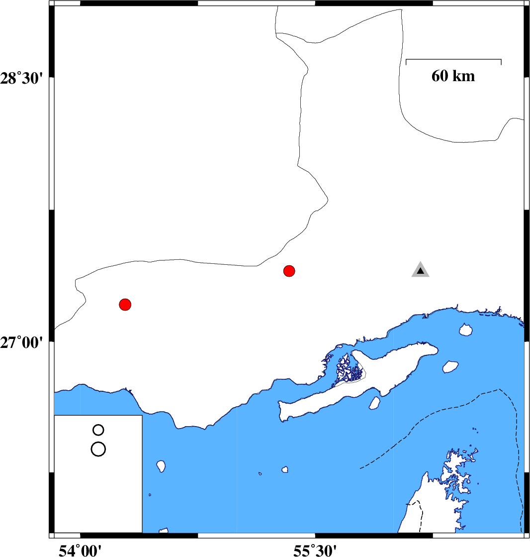 | 2021/11/01 | 15:48:43.7 | 19:18:43.7 | 27.401 | 55.333 | 12 | ML:3.2 | Hormozgan Province, 97 km North-West of Bandar-e abbas | ||