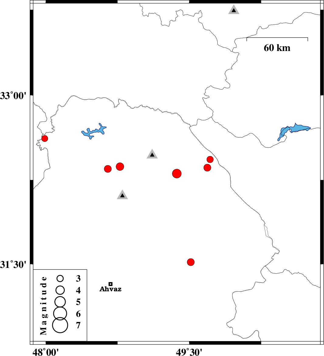 | 2021/11/06 | 10:20:14.9 | 13:50:14.9 | 32.349 | 48.648 | 12 | ML:3.4 | Khoozestan Province, 24 km -East of Dezful | ||