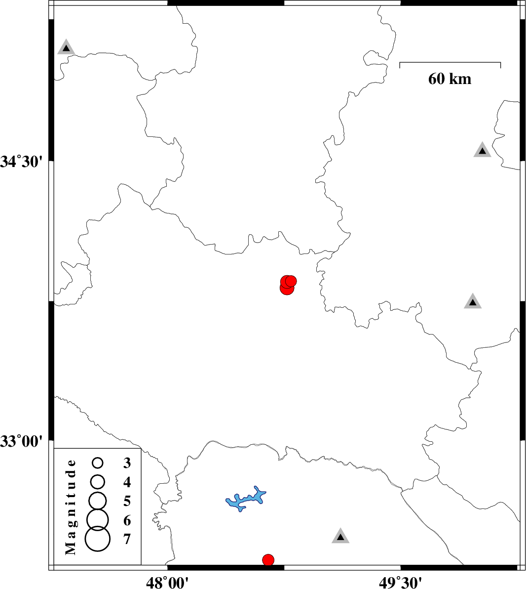 | 2021/11/11 | 13:44:57.8 | 17:14:57.8 | 33.857 | 48.793 | 10 | ML:3.3 | Lorestan Province, 5 km of Borujerd | ||