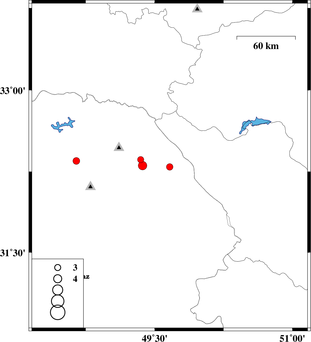 | 2021/11/06 | 10:20:14.9 | 13:50:14.9 | 32.349 | 48.648 | 12 | ML:3.4 | Khoozestan Province, 24 km -East of Dezful |