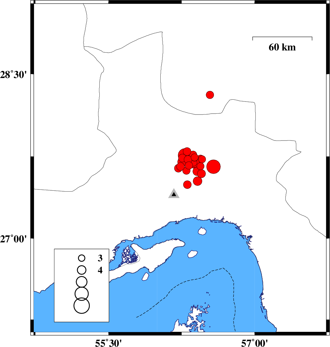 2021/11/14 12:52:38.6 16:22:38.6 27.52356.19915 ML:4 Hormozgan Province, 39 km North of Bandar-e abbas