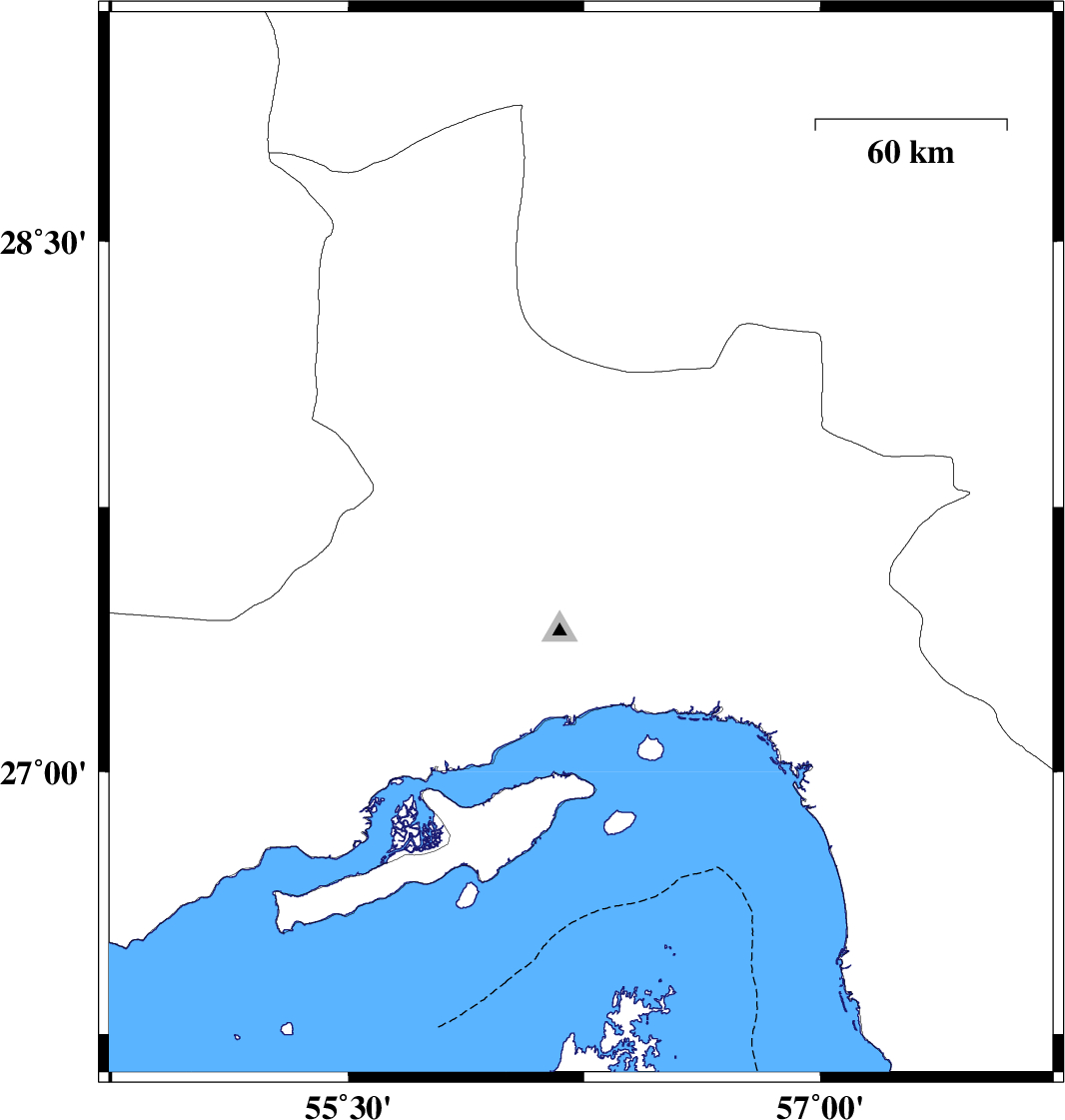 Map Region : lat:26.143-29.143  lon:54.74-57.74
