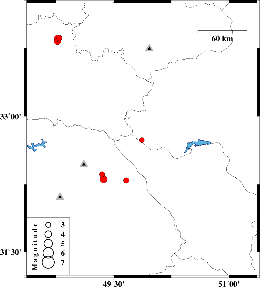 | 2021/11/16 | 22:36:19.4 | 02:06:19.4 | 32.739 | 49.867 | 12 | ML:3 | Esfahan Province, 32 km South-West of Fereydunshahr | ||