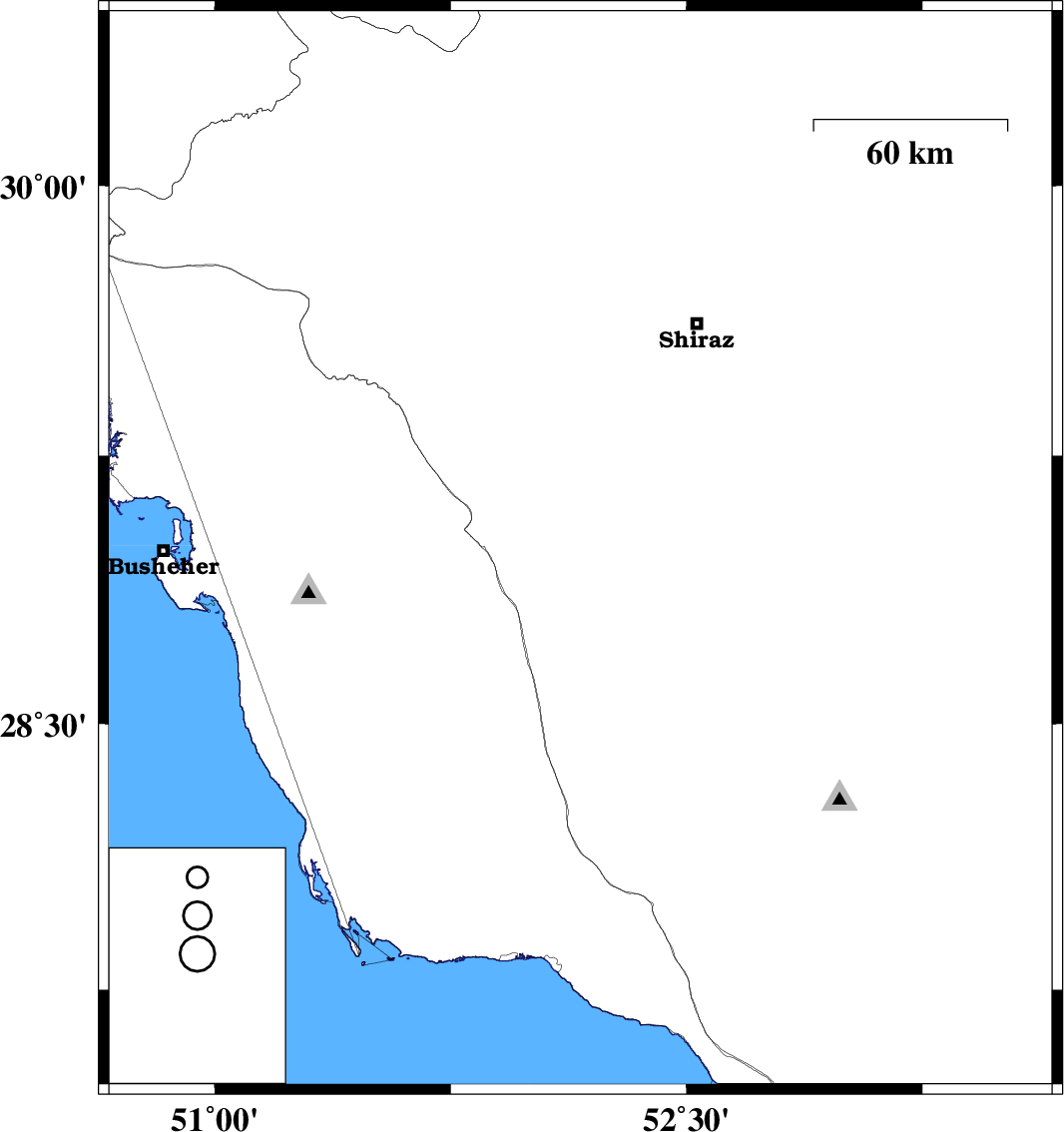 | 2021/11/30 | 01:20:07.5 | 04:50:07.5 | 28.984 | 52.163 | 12 | ML:3.2 | Fars Province, 15 km North of Farashband |