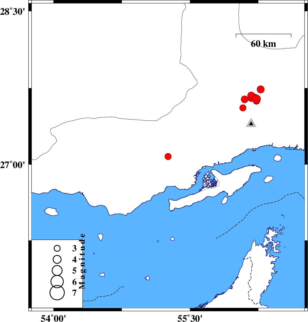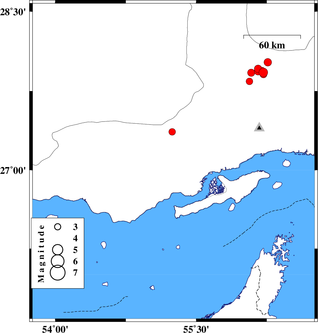 | 2021/12/10 | 02:54:06.3 | 06:24:06.3 | 27.078 | 55.258 | 14 | ML:3.3 | Hormozgan Province, 74 km North-East of Bandar-e lengeh | ||