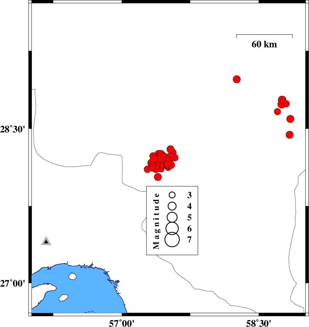 2021/12/02 02:30:36.4 06:00:36.4 28.03357.58912 ML:3.7 Kerman Province, 14 km -West of Kahnuj